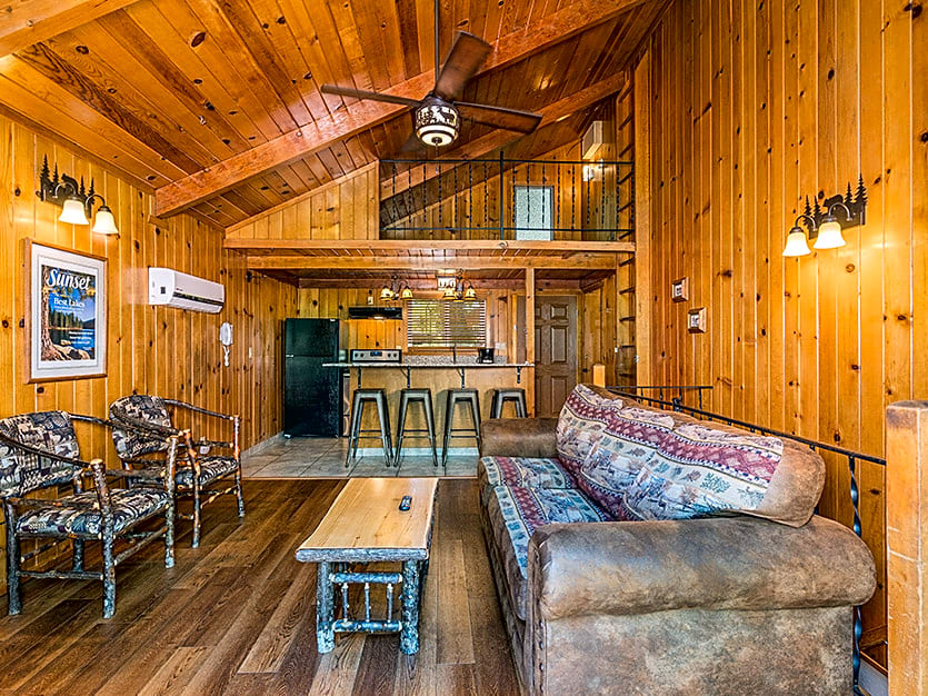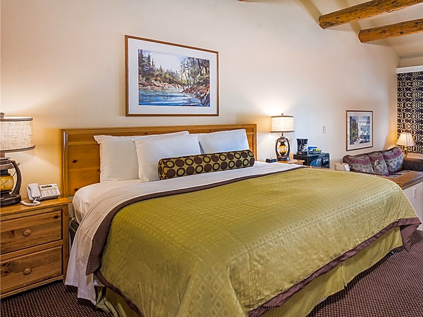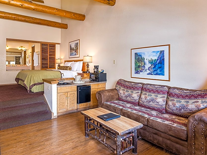 LAKEFRONT SPA SUITE is 431 square feet and includes a king-size bed 150-183 width plus a sofa bed.